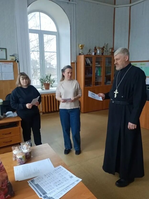 13 апреля 2026 года настоятель храма прп. Варнавы Ветлужского иерей Андрей Устинов поздравил сотрудников ДООЦ им. Перова со Светлой Христовой Пасхой и вручил им миссионерские буклеты, рассказывающие о главном христианском празднике. В теплой и дружеской атмосфере отец Андрей пообщался с работниками учреждения на духовные темы и в знак благодарности за совместное сотрудничество подарил всем пасхальные куличи.